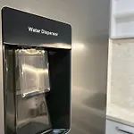 Eine voll ausgestattete Küche mit einem Wasserkocher, einem Kühlschrank und Küchenutensilien gehört zur Ausstattung dieses Apartments für Selbstversorger. Die Bushaltestelle Agip liegt gleich neben diesem Apartment.